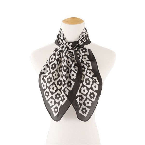 How cute is this black and white daisy print scarf. So many ways this can be worn! Use it as a wild rag to keep your neck warm in the winter, add it to your pony tail for a cute accent or even braid it into your hair for an even unique look!